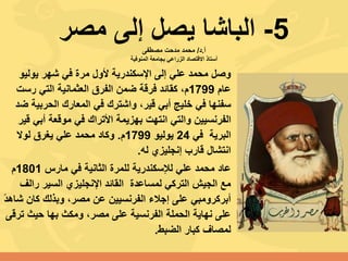 يتناول المستند تاريخ علي محمد باشا ودوره كمساعد للجيش الإنجليزي في مصر خلال الصراعات ضد الفرنسيين. كما يناقش التحديات الاقتصادية والسياسية التي واجهت البلاد وقرار تعيينه والياً على مصر. يسلط الضوء على جهوده لتعزيز سلطته ومكانته في المجتمع المصري.