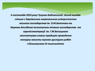 2. 4 листопада 2016 року Чугуєво-Бабчанський лісний коледж