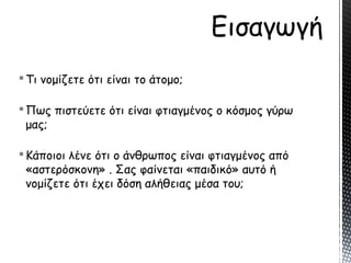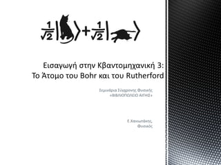 Στην ομιλία αυτή συζητήσαμε την αναδρομή στην ιστορία του ατόμου από την εποχή των αρχαίων Φιλοσόφων έως τις αρχές του 20ού αιώνα.