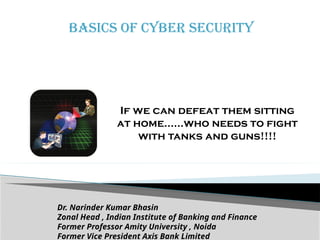 The document discusses the importance of cyber security in banking, emphasizing the protection of sensitive customer data, maintaining trust, and compliance with regulations. It outlines various cyber threats banks face, such as hacking and phishing, while providing best practices for enhancing cyber security, including using antivirus software and backing up important files. Additionally, it highlights the necessity of cybersecurity governance and policies to manage risks and establish a secure operational framework.