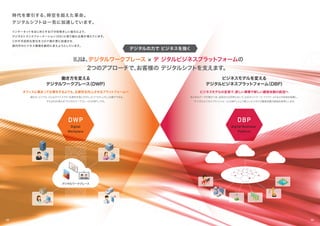 デ ジタルビジネスプラット フォームの 2つのアプローチで、 お客様の デジタルシフトを支えます。 Digital Workplace Digital Business Platform DWP DBP