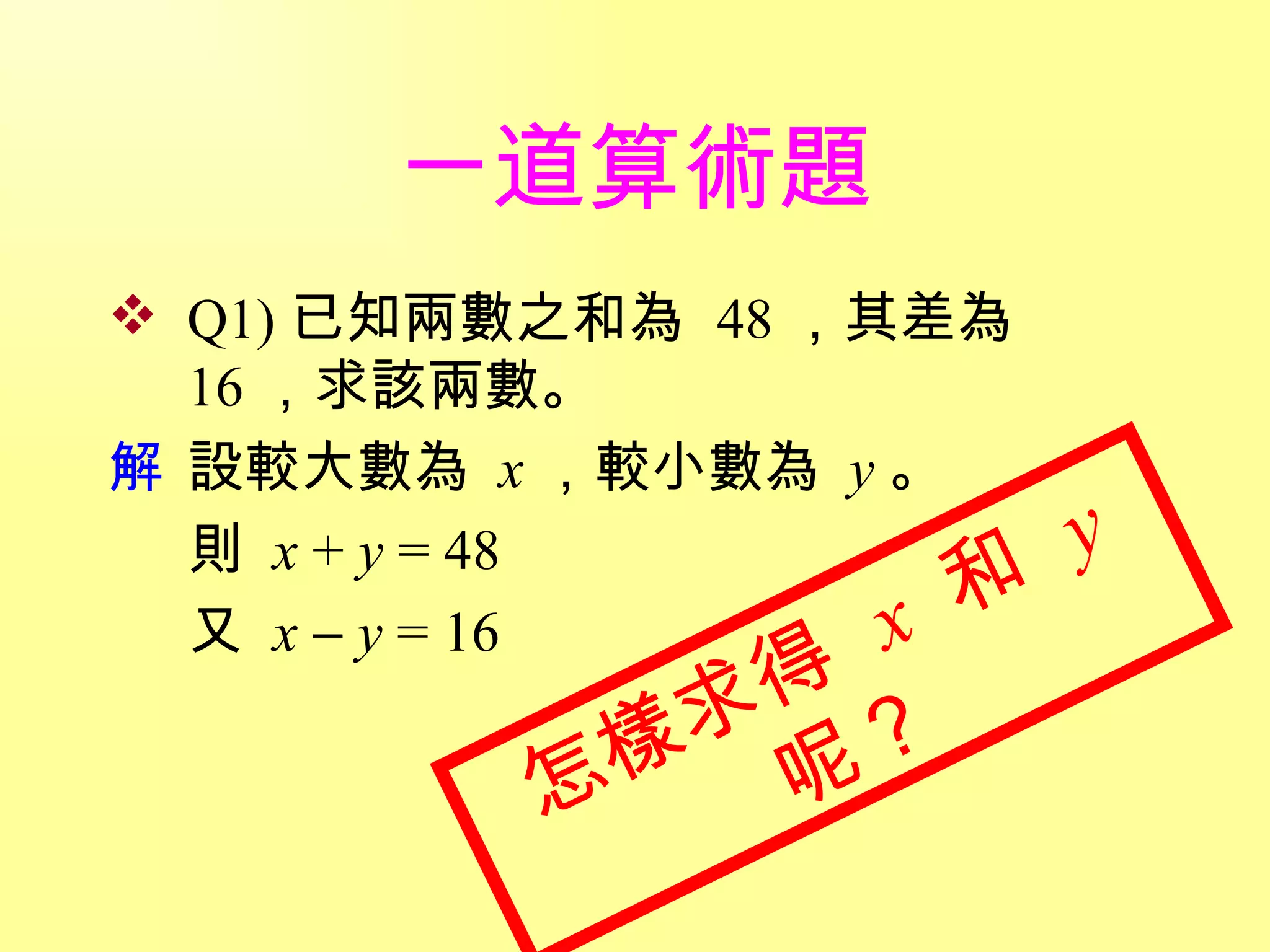 本文介绍了联立二元线性方程的基础概念与求解方法,包括图解法、代入法和消元法。通过具体例题,展示了如何设定未知数并建立方程,最终求得所需的数值。文中包括了经典问题和应用实例,帮助读者理解联立方程的实际应用。