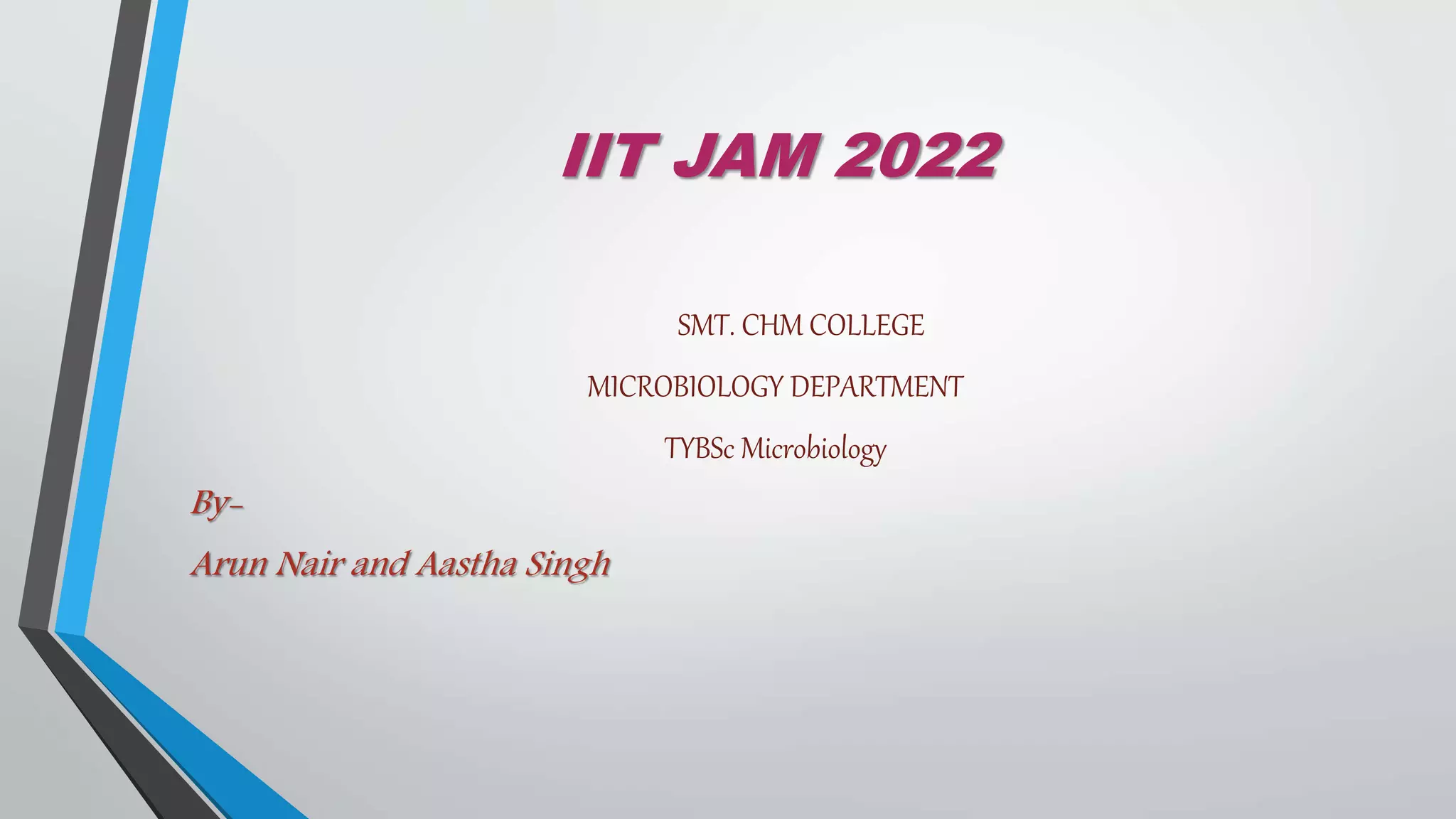 The document provides information about the IIT JAM 2022 entrance exam for admission to various master's and dual degree programs at IITs, NITs, and IISc. It outlines eligibility criteria, examination structure, paper patterns, and important dates related to online applications and fees. The exam will be conducted in an online format, assessing candidates in subjects like physics, chemistry, mathematics, and more.