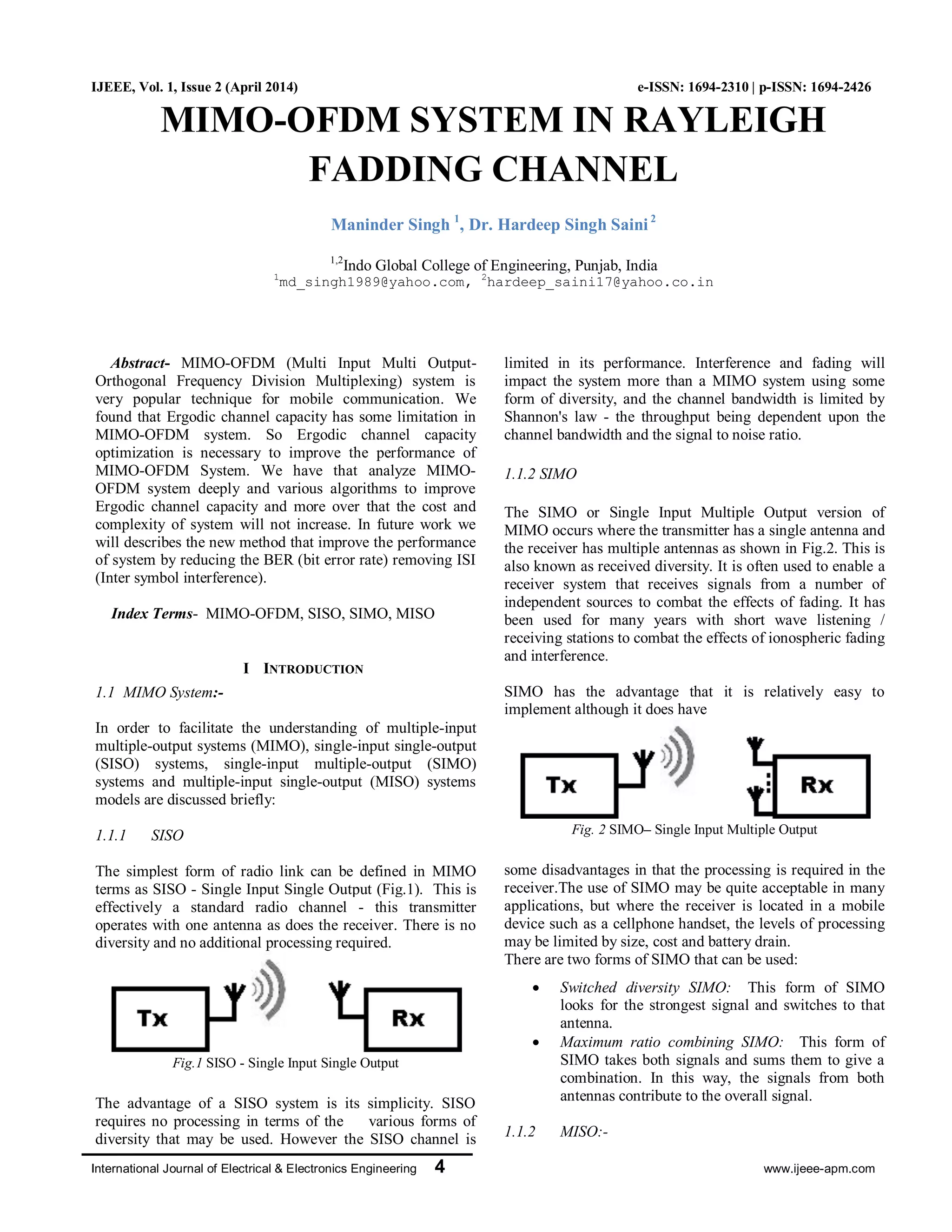 The document discusses the MIMO-OFDM (Multiple Input Multiple Output - Orthogonal Frequency Division Multiplexing) system, which enhances mobile communication performance by optimizing ergodic channel capacity while managing system complexity. It outlines different antenna configurations (SISO, SIMO, MISO, MIMO) and highlights how OFDM can mitigate issues like inter-symbol interference in multipath fading environments. Future work will focus on new methods to further improve the system's performance, particularly in reducing bit error rates.