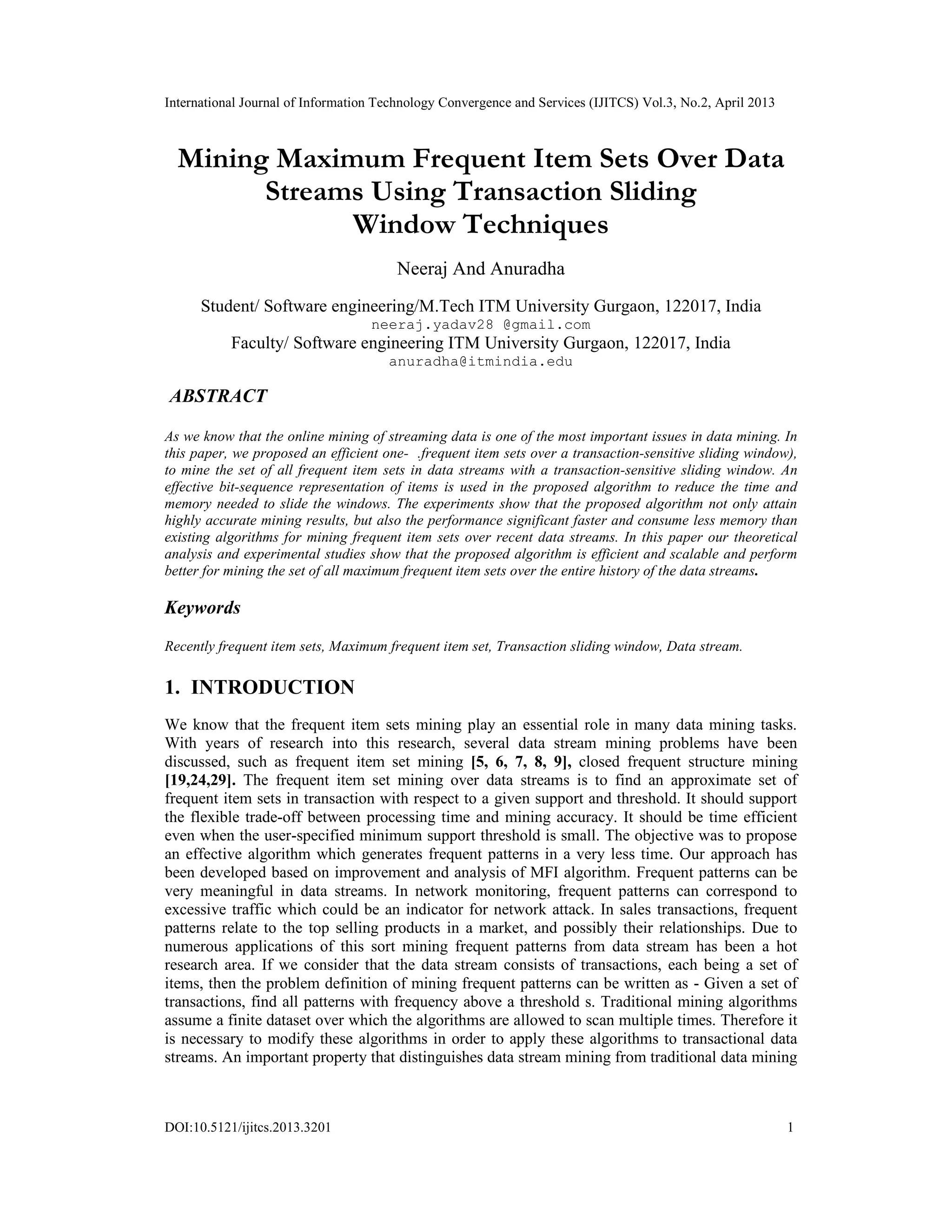 The paper presents an efficient algorithm called MFI-TransSW for mining maximum frequent item sets from data streams using a transaction-sensitive sliding window approach. This algorithm employs a bit-sequence representation to reduce time and memory consumption while achieving high accuracy in mining results. Experimental results demonstrate that MFI-TransSW outperforms existing algorithms in terms of speed and memory efficiency for mining frequent item sets in real-time data streams.