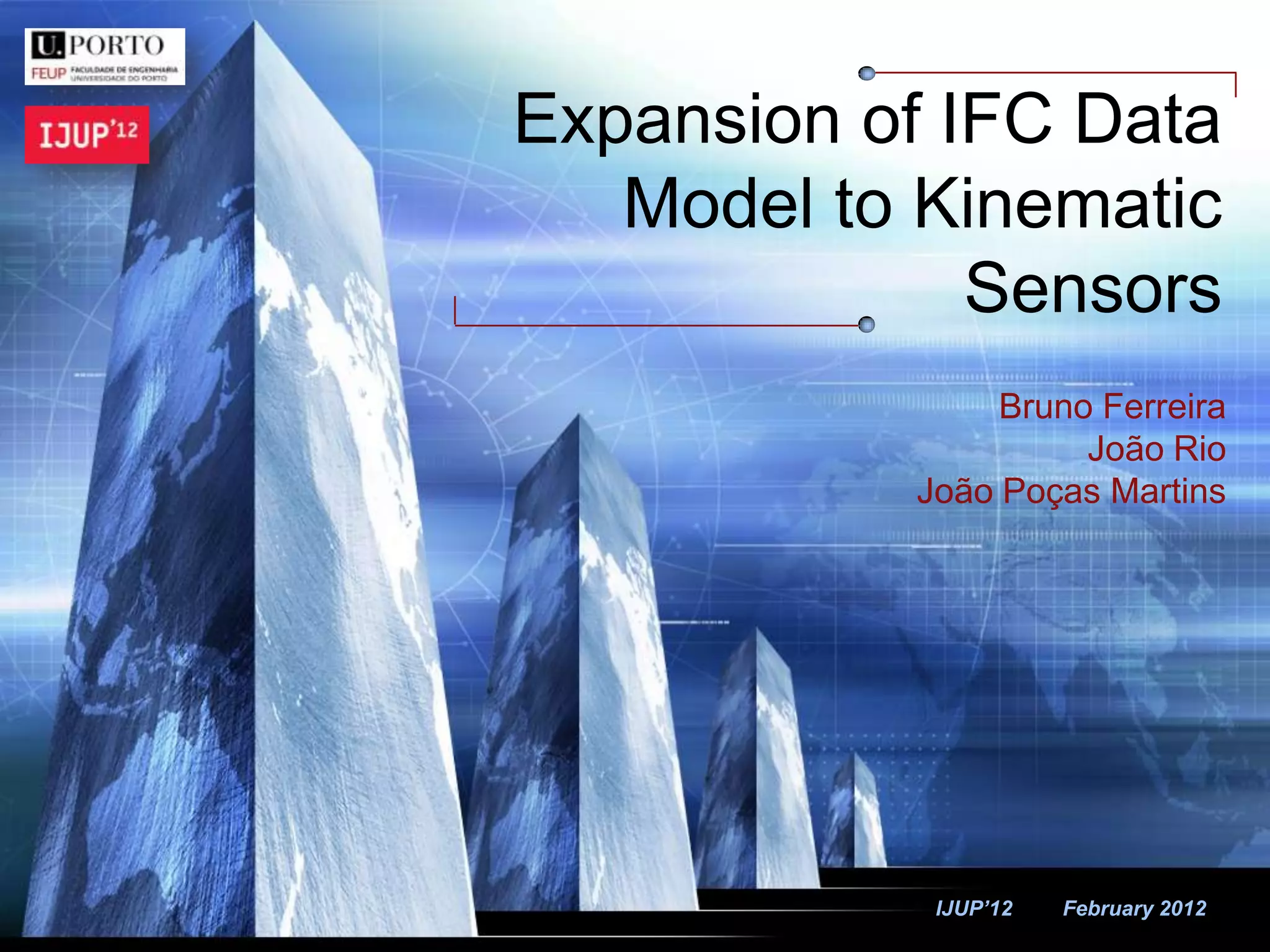 The document discusses the expansion of the Industry Foundation Classes (IFC) data model to include kinematic sensors for structural health monitoring in buildings. It highlights the importance of integrating sensor data into Building Information Modeling (BIM) and emphasizes that while the IFC model supports interoperability, it requires further enhancements for specific use cases. The conclusions drawn suggest that robust models alone do not ensure successful information exchange within the construction industry.