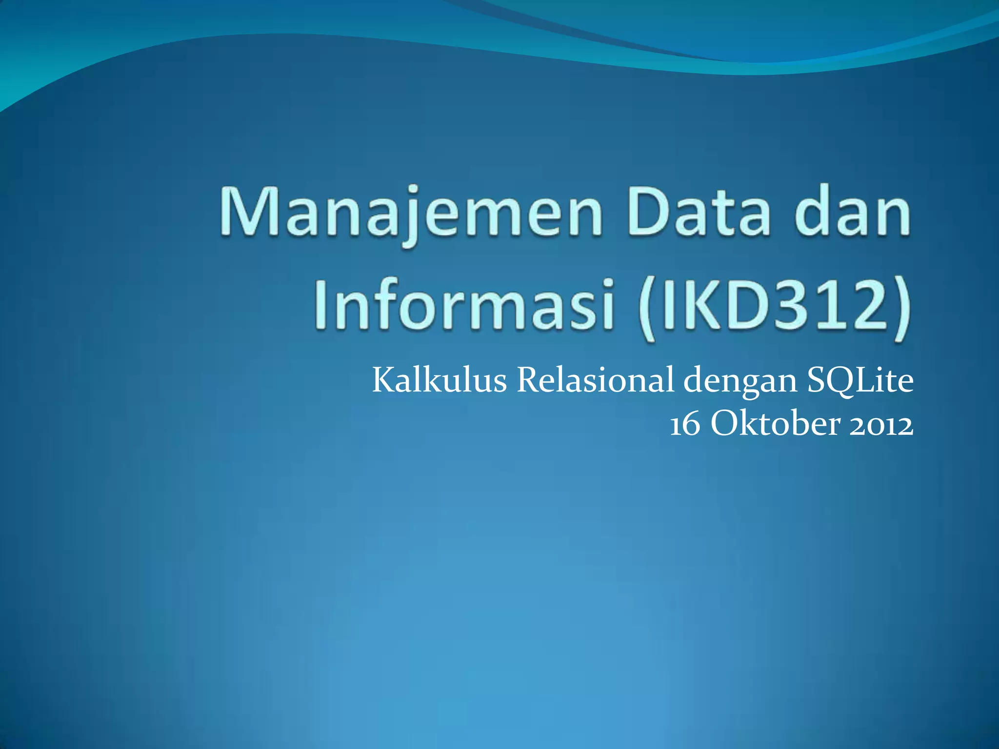 Dokumen ini memberikan panduan tentang penggunaan SQLite untuk belajar kalkulus relasional dan SQL. Terdapat instruksi langkah demi langkah untuk mengatur dan menjalankan SQLite, termasuk pengaturan variabel lingkungan dan perintah dasar. Selain itu, informasi tentang pengelolaan database dan tabel melalui perintah SQLite juga dijelaskan.