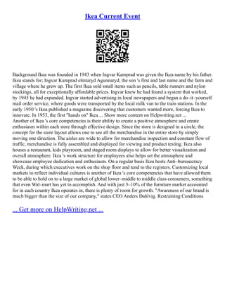 Ingvar Kamprad founded IKEA in 1943 in Sweden. IKEA pioneered flat-pack furniture that was affordable and easy for customers to assemble themselves. The company has experienced tremendous growth, expanding to over 300 stores in 47 countries. IKEA's unique culture emphasizes frugality, independence among employees, and participative leadership. The company's success is largely due to the vision and leadership of its founder, Ingvar Kamprad.