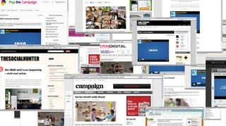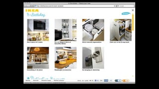 This document summarizes a project to create an interactive digital experience to promote IKEA kitchens in Russia. The three main objectives were to position IKEA as the leader in the Russian kitchen market, showcase modern and functional design at affordable prices, and develop an interactive tool combining inspirational content. The experience allowed users to switch between five fictional families living in different sized IKEA kitchens to view features from multiple perspectives. Media support included banners, PR across social media and kitchen sites, and external advertising. After five months, over 1 million visits and nearly 3 million pageviews showed the project was successful in driving awareness and appreciation within the creative community.