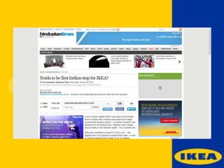 IKEA is an international home products company known for its flat-pack furniture and accessories. It was founded in Sweden in 1943 and has since expanded globally. The document discusses IKEA's history, business model, marketing strategies, and expansion into international markets like India. IKEA keeps costs low by designing products to be affordable, easy to assemble, and ship in compact packages. It uses a multi-pronged approach including competitive pricing, wide selection, convenient shopping experiences, and environmental sustainability to attract customers.