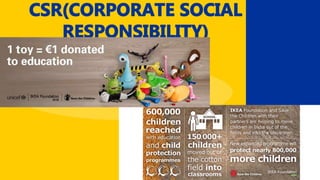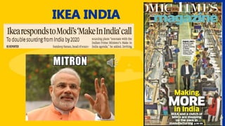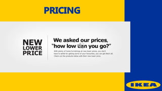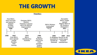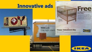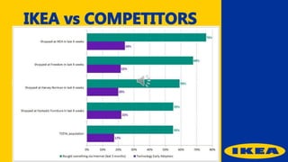 Ikea was founded by Ingvar Kamprad in Sweden with the goal of offering affordable, well-designed home furnishings. Ikea allows customers to purchase flat-packed furniture and other home goods that they can assemble themselves at home. Ikea has grown into a global retail giant through its mix of low prices, do-it-yourself assembly model, and quirky marketing campaigns that emphasize the brand's core values while also raising awareness of social issues.