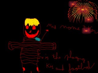 The document introduces a 10-year-old boy named Iker who has blond hair and lives in Cerler. His favorite hobbies are skiing, snowboarding, and playing football. He goes to school by car and his favorite subjects are Maths and Art. The document ends by stating that Iker is happy and always happy.