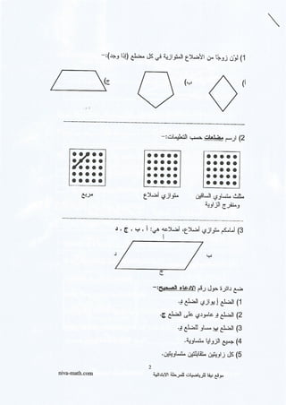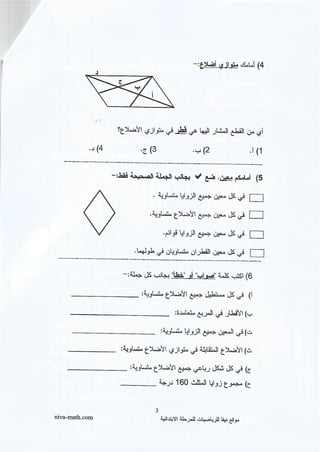 تجميع اسئلة امتحانات الاشكال الرباعية