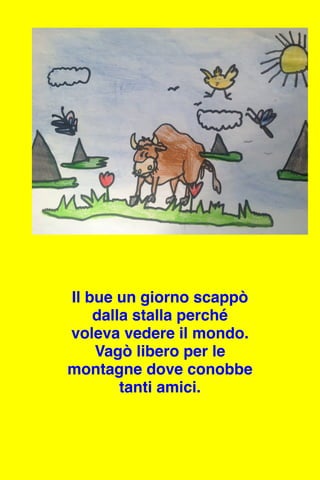 Il bue della classe seconda C della scuola 'Carducci' di Fucecchio scappa dalla stalla per esplorare il mondo e incontra nuovi amici tra le montagne. Tuttavia, quando si avvicina a un vulcano e subisce una scottatura, decide di tornare a casa dai suoi vecchi amici. Il racconto è scritto da autori tra cui Jacopo Lotti, Margherita Ndiaye e Luca Balzano.
