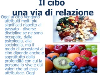 Il documento esplora la complessa relazione tra cibo e individuo, evidenziando come il cibo oggi rappresenti non solo un mezzo di nutrimento, ma anche una forma di comunicazione e differenziazione sociale. Inoltre, discute i rischi associati a una percezione distorta del cibo, come l'anoressia, e sottolinea il ruolo dei mass media nell'influenzare le abitudini alimentari, suggerendo che questi possono promuovere uno stile di vita sano.