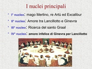 Il ciclo bretone, o ciclo arturiano, racconta le leggende di re Artù e dei suoi cavalieri, evidenziando l'importanza della Tavola Rotonda per evitare conflitti tra di loro. Le storie risalgono tra il V e il VI secolo e mescolano mitologia celtica e tradizioni successive. I temi principali includono eroismo, magia, amore e fedeltà, con nuclei che comprendono Merlino, Excalibur, il Santo Graal e le relazioni tra i personaggi.