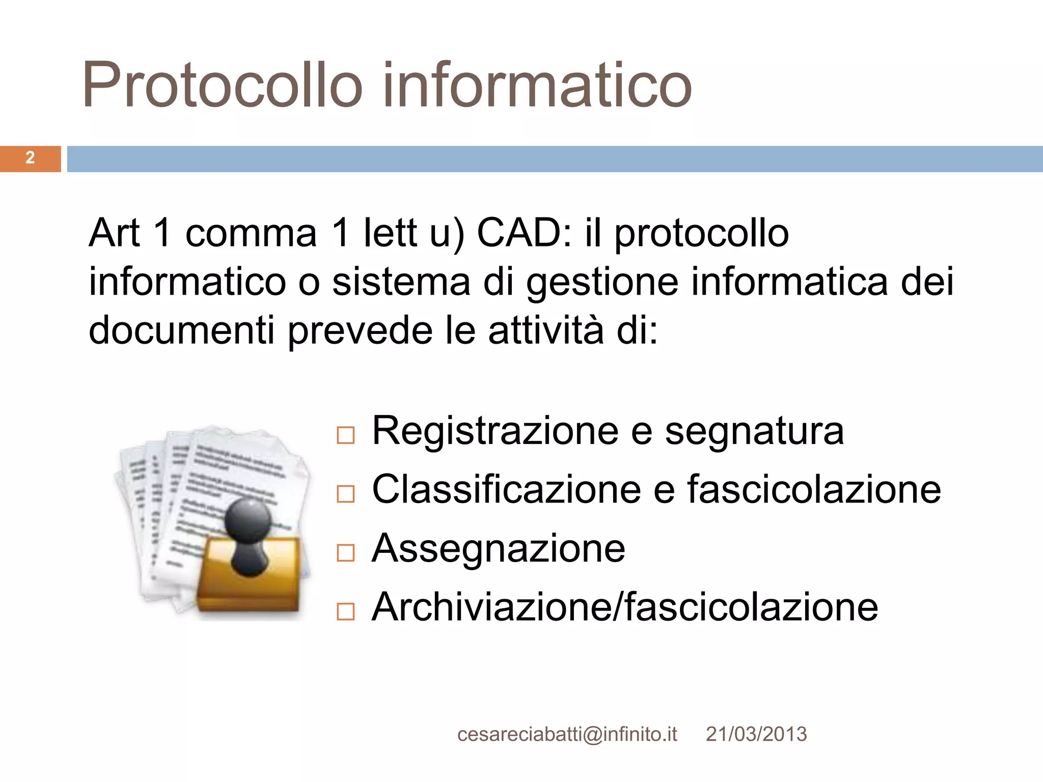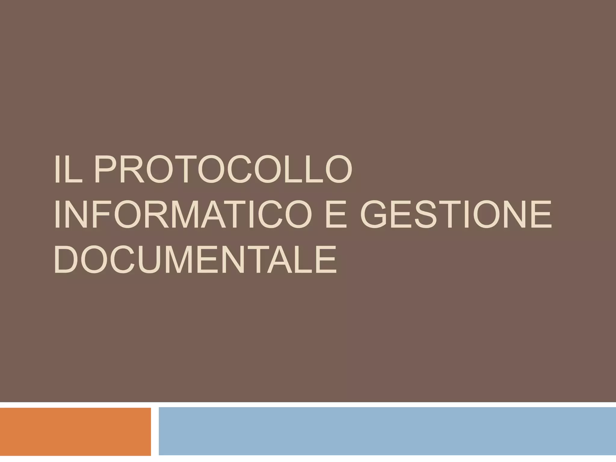 Il documento descrive il protocollo informatico e la gestione documentale, evidenziando le attività di registrazione, classificazione, archiviazione e assegnazione dei documenti. Viene sottolineata l'importanza della registrazione obbligatoria per tutti i documenti in entrata e in uscita, con specifiche eccezioni e dati obbligatori da includere. Inoltre, si discute della segnatura e della gestione della riservatezza dei documenti registrati nel sistema di gestione informatica.