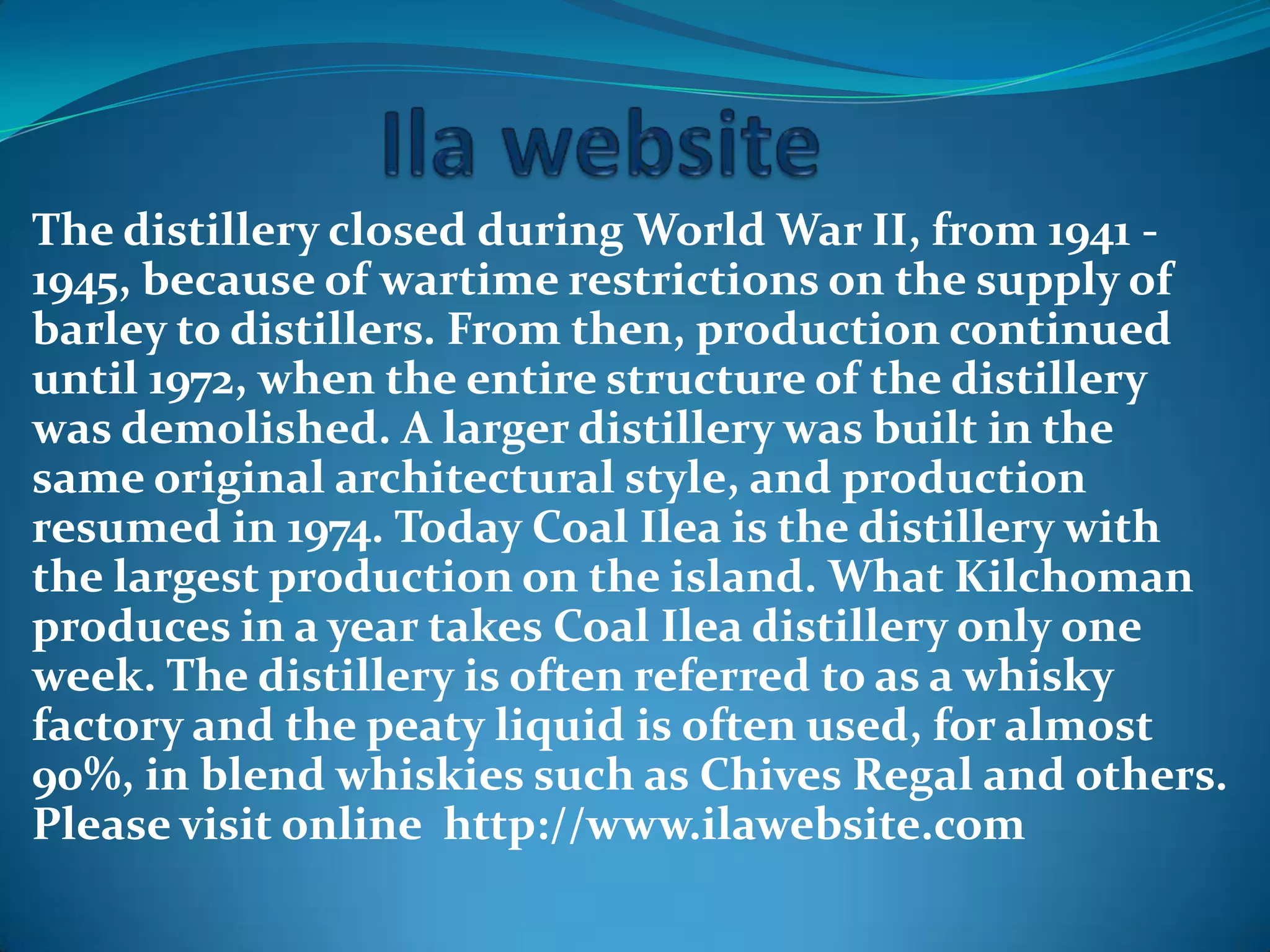 The distillery closed from 1941 to 1945 due to wartime restrictions but resumed production in 1974 after a new structure was built. Today, Coal Ilea is the largest distillery on the island, producing significantly more than Kilchoman in a shorter time. The whisky produced is primarily used in blend whiskies, making it a notable player in the industry.