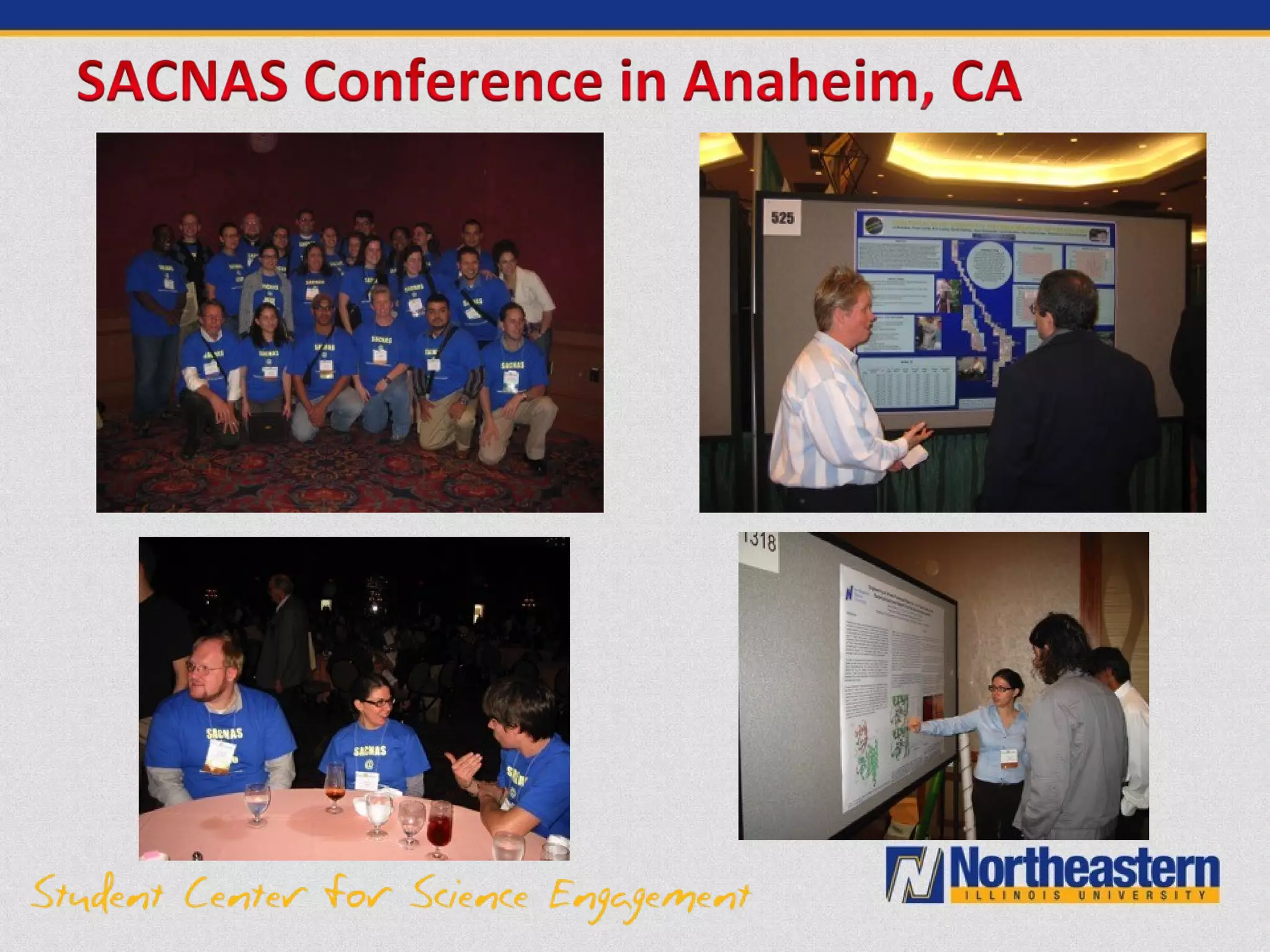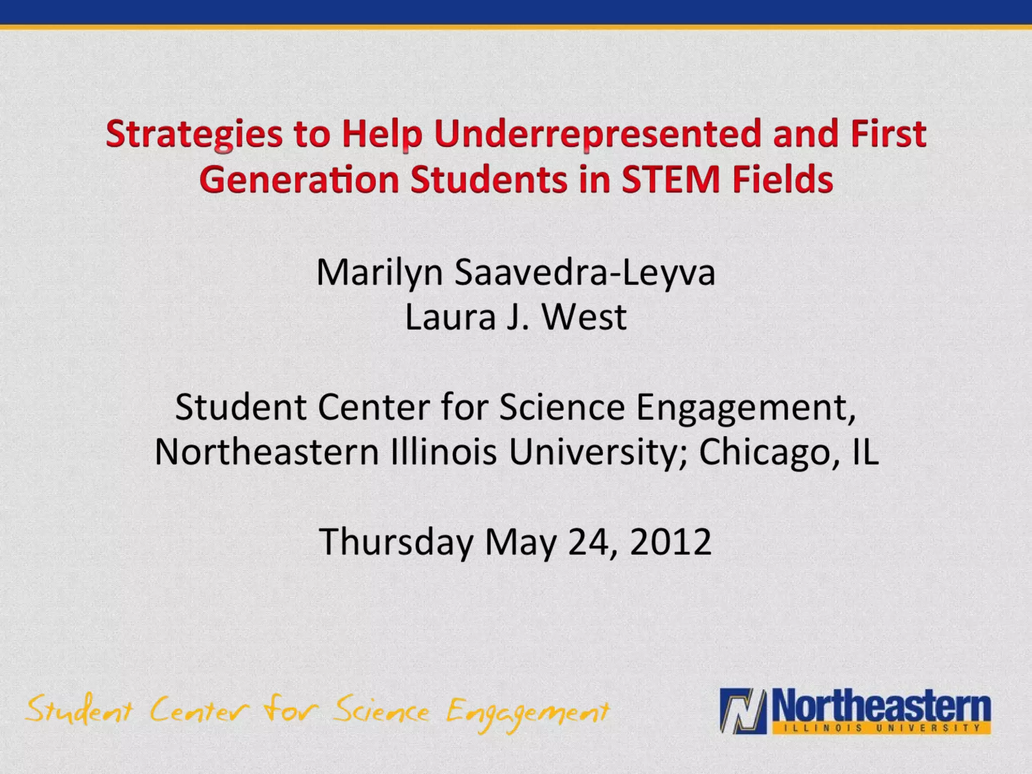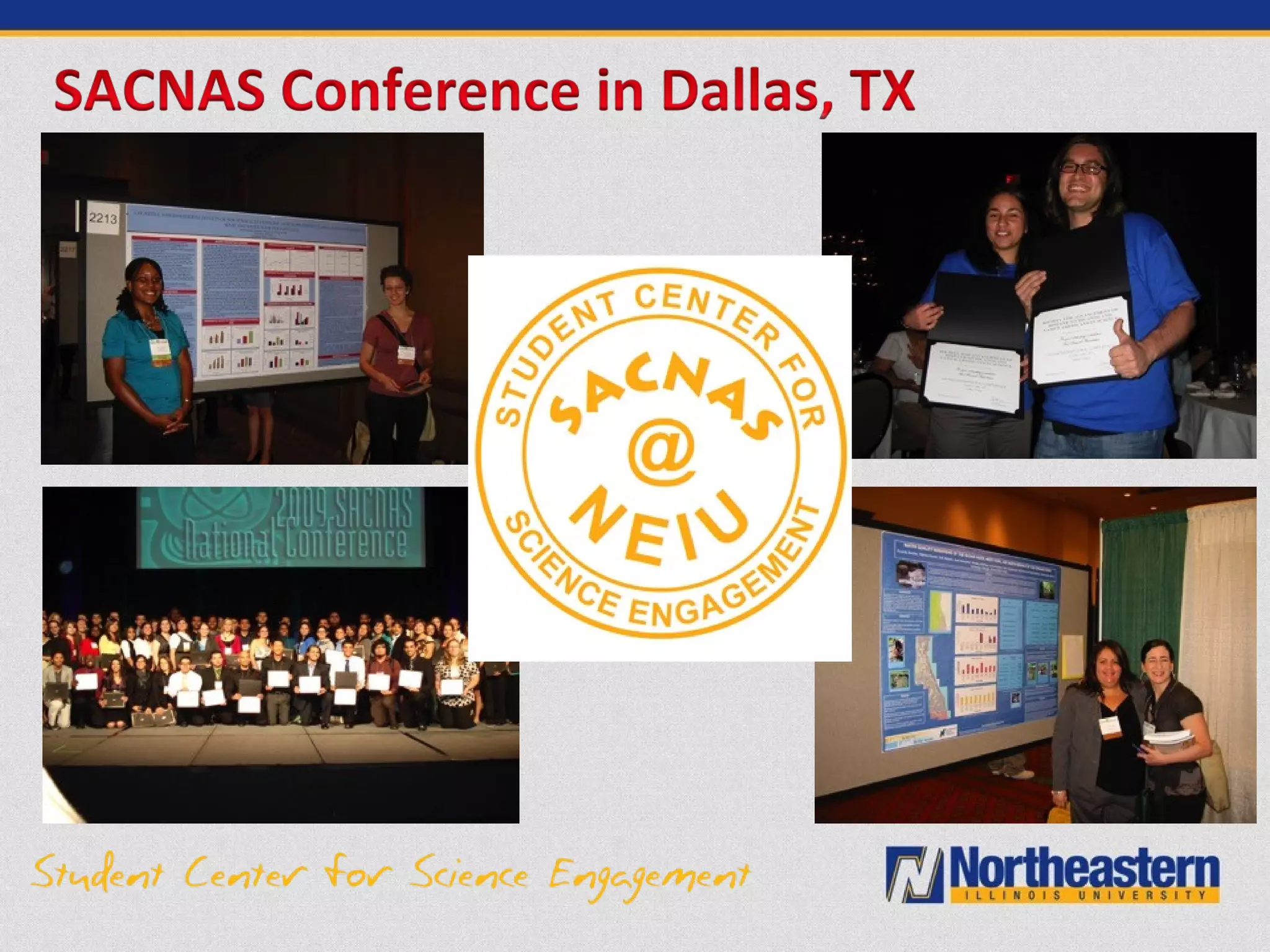 The document describes the Science and Computing Center for Excellence (SCSE) at Northeastern Illinois University. The SCSE aims to recruit and support underrepresented and first-generation students pursuing STEM degrees. It provides various academic and professional programs including tutoring, research experiences, conference travel, graduate school preparation, internships and career guidance. Assessment data shows the SCSE has increased STEM enrollment and graduation rates, particularly among Hispanic and low-income students. The personalized support from the SCSE staff has helped many students succeed in STEM fields.