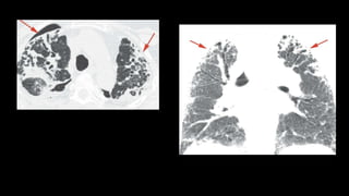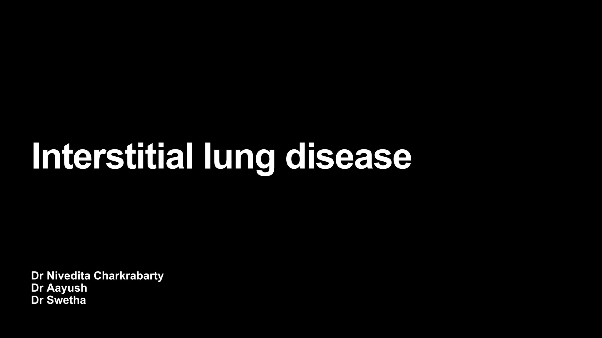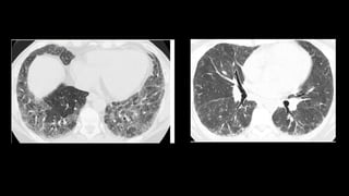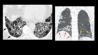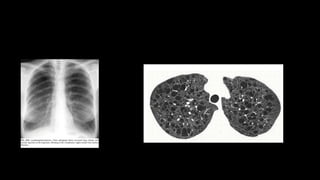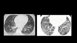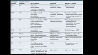 1. The document discusses various interstitial lung diseases (ILDs), their classification, diagnostic criteria and patterns seen on imaging.