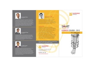 The document outlines the Ilizarov Course 2012, featuring Dr. A.V. Gurava Reddy and Dr. Mangal Parihar, specialists in limb reconstruction and external fixation techniques. It includes details about the course schedule, topics covered, and registration information for attendees. The event emphasizes the importance of Ilizarov techniques in orthopaedics, with a focus on limb lengthening, deformity correction, and treatment of non-unions.