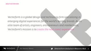The document discusses Bluetooth Low Energy (BLE) technology, beacons, and iBeacon. It provides an overview of what BLE and beacons are, how they work, and examples of use cases. Specifically, BLE allows short-range wireless transmission between devices using little power, while beacons are BLE devices that transmit signals to be detected by BLE-enabled devices like smartphones. Apple's iBeacon standard allows beacons to interact with iOS devices in the background to provide location-based experiences. Potential applications discussed include retail, publishing, and content distribution.