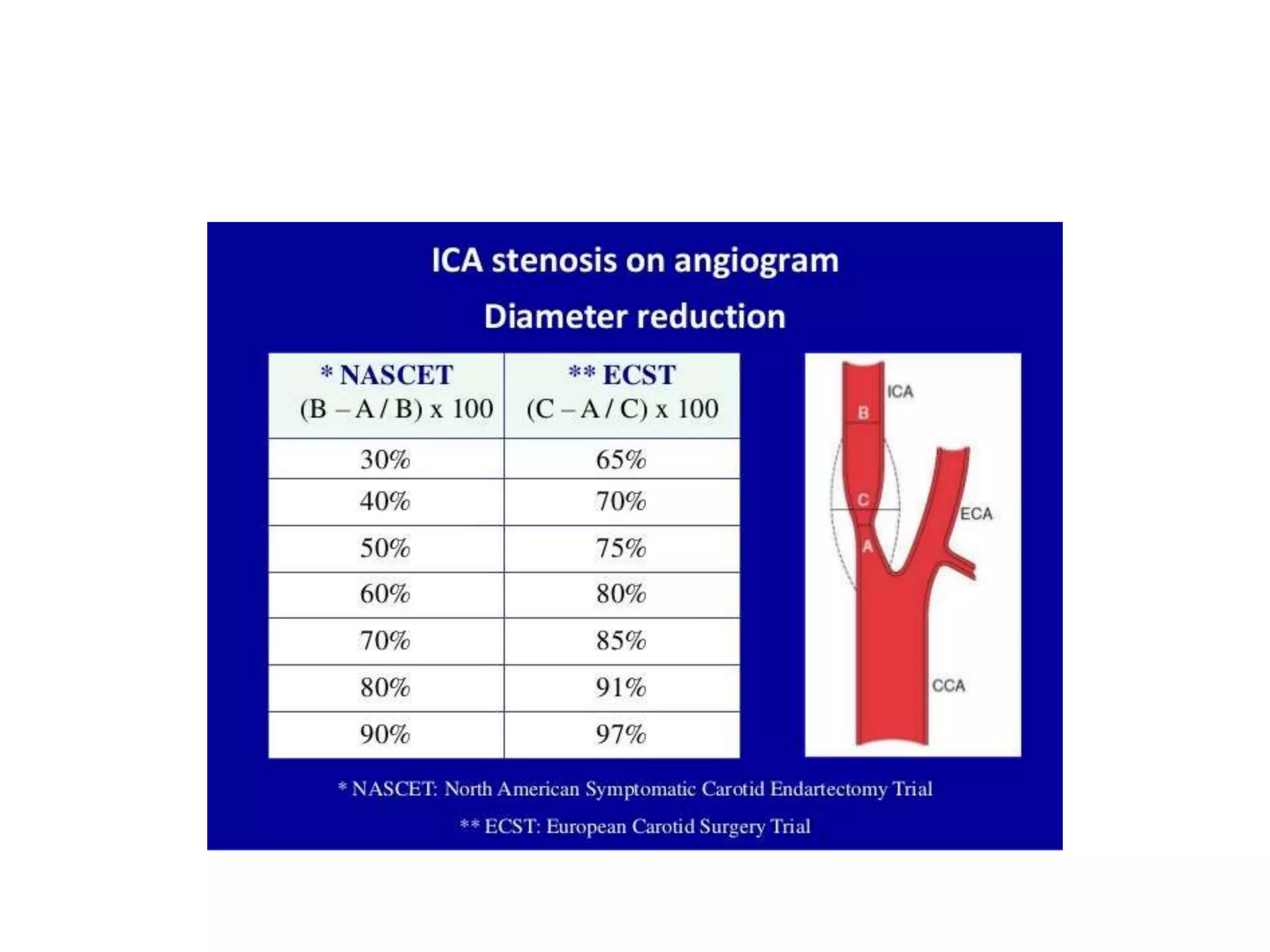 1) Endarterectomy is a surgical procedure to remove atheromatous plaque buildup from the lining of an artery to improve blood flow. 2) In internal carotid artery occlusion, collateral blood flow to the occluded artery occurs via retrograde flow from branches of the external carotid artery into the ophthalmic artery, a phenomenon known as internalization of the external carotid artery. 3) Ectasia is a pathological enlargement of the cerebral arteries.