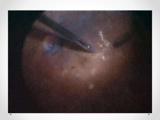 The document discusses the management of the internal limiting membrane (ILM) in macular surgery. It finds that ILM peeling improves outcomes for various vitreo-retinal conditions by removing traction on the macula and preventing recurrent epiretinal membranes. Specifically, ILM peeling improves closure and vision for macular holes compared to no peeling. For large holes, an inverted ILM flap technique provides even higher closure rates. ILM peeling also benefits diabetic vitrectomy and retinal detachment surgery but may not improve outcomes for uncomplicated retinal detachments. Thus, the ILM can act as both a "friend and foe" in macular surgery.