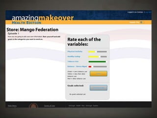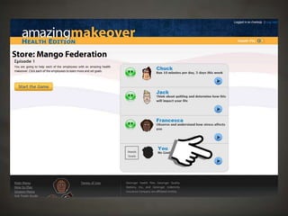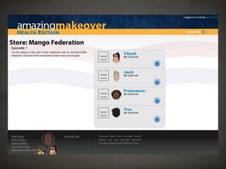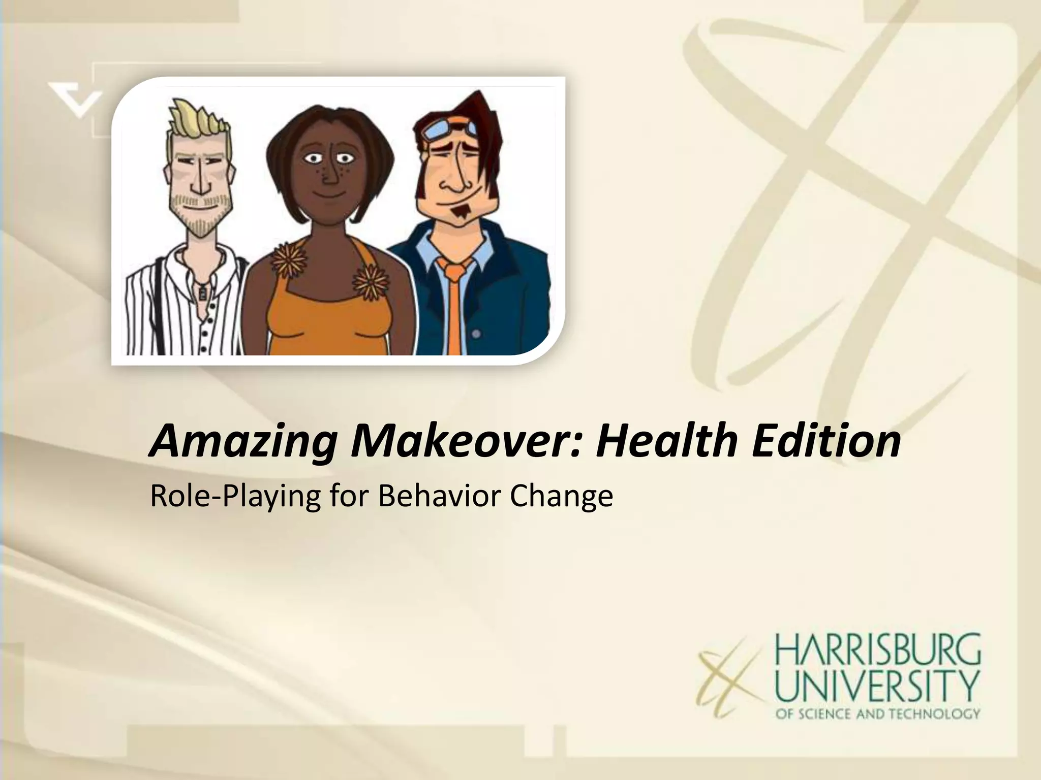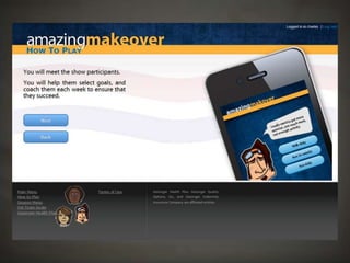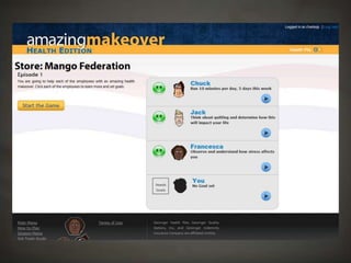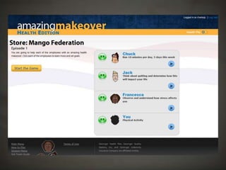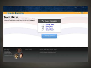 The document outlines a project focused on developing a health-related role-playing game aimed at influencing behavior change among young, self-insured individuals. It highlights the challenges faced by insurers in engaging this demographic and emphasizes the importance of preventative care. The project, developed at Harrisburg University, involved multiple stages including client engagement, game design, testing, and lessons learned through the development process.