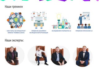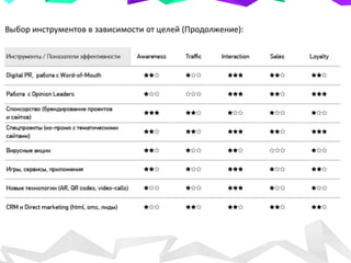 Документ представляет собой обзор интернет-маркетинга 2.0, описывающий отличия между традиционным и новым маркетингом, стратегии и инструменты для эффективного продвижения продуктов в интернете. Также рассматриваются ключевые аспекты, такие как целевая аудитория, цели и показатели эффективности, а также современные каналы коммуникации и рекламные инструменты. В конце документа приводится анонс предстоящих вебинаров и лекций по различным темам интернет-маркетинга.