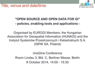 The session at the Imagine Conference 2014 focused on the importance and implications of open source and open data for geographic information (GI), highlighting policies, tools, and applications that support a data-driven economy. Key findings included the anticipated economic benefits of open data, the need for improved data quality, and the significance of combining geo-data with non-geo-data for innovation. Recommendations were made for enhanced training and addressing the skill shortage in handling large geodata while emphasizing the ongoing development of an open data community.