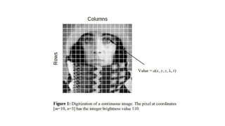 Jerlyn Manohar uses Python for 2D and 3D image processing, managing digital assets, and testing tools and plugins. Python is widely used due to its readability, quick development, simple syntax, beginner friendliness, large community, and ability to interact with other languages. Python can be used for web development, machine learning, data analysis, desktop apps, games, image processing, and more. Setting up Python involves installing it and checking the environment. Python supports basic data types like integers, floats, strings, booleans, as well as collection types like lists, tuples, sets, and dictionaries. Other topics covered include conditions, loops, functions, exceptions, user input, and digital image processing concepts.