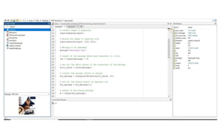 This document discusses image steganography using the least significant bit (LSB) method. It defines steganography as concealing a file within another file. For image steganography, a secret message is hidden in an image by altering the LSB of pixel values. The algorithm embeds each bit of the message sequentially by toggling the LSB of pixels. To extract the message, the LSB values of pixels are read out in order. While simple, LSB steganography can be detected easily and hides messages in a small number of pixels. Applications include copyright protection and secure data transfers, while disadvantages are low security and reduced image quality.