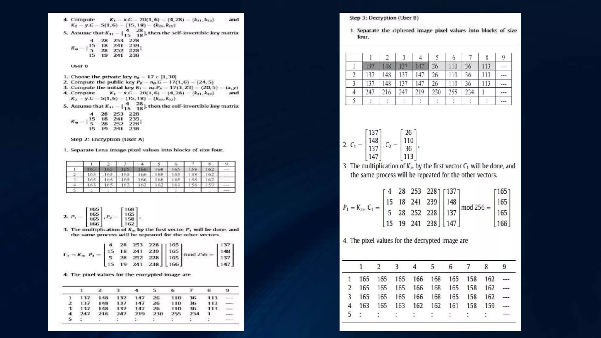 and take modulo 256 for each value C1 =(Km.P1) mod 256.