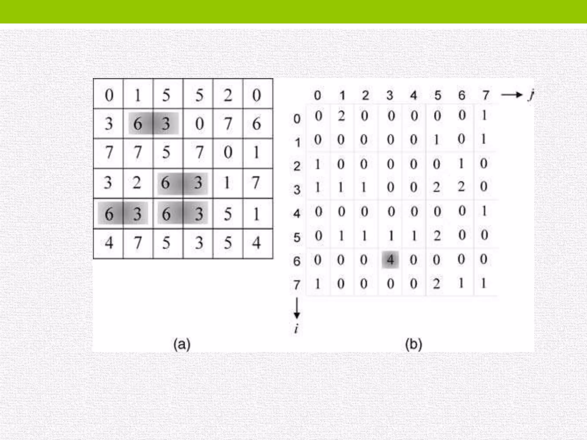 matrix whose element g(i, j) represents the number of times that pixel pairs with
