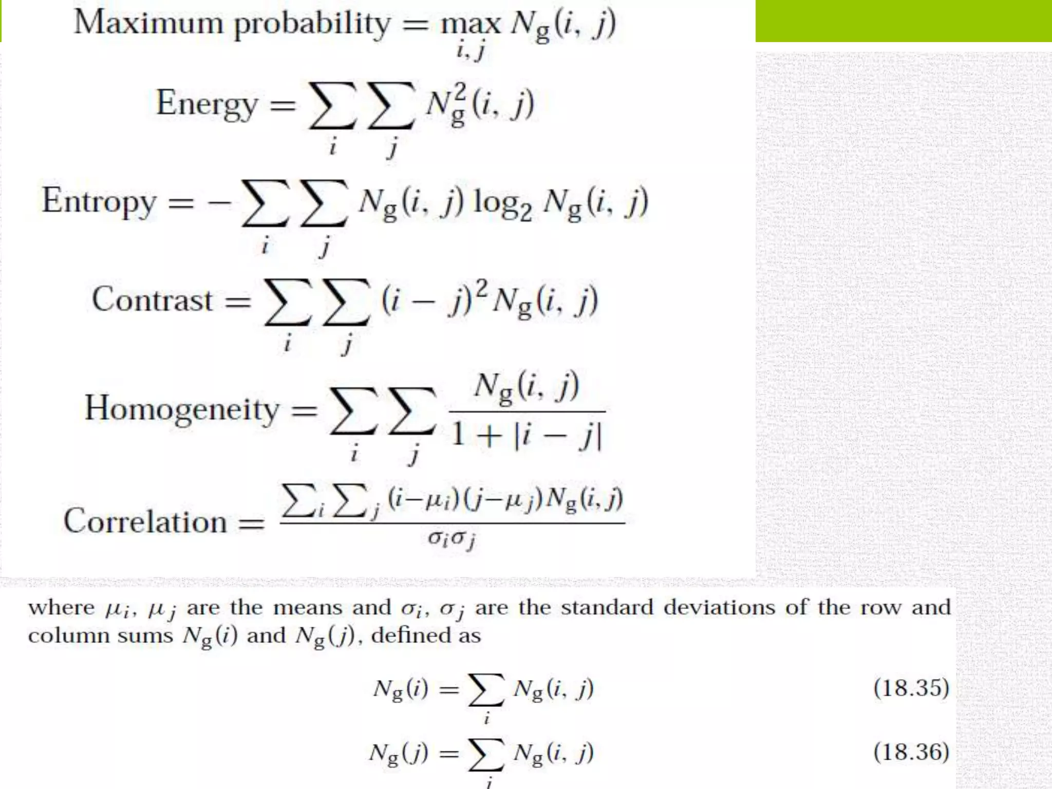 where Ng(i, j) is the normalized gray-level co-occurrence matrix. Since all values of