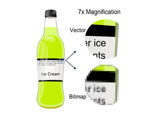 This document summarizes common image file formats, including their extensions, color capabilities, compression types, and common uses. JPEG files use lossy compression and support up to 24-bit color for photos shared on the web. GIF files use lossless compression and are limited to 8-bit color, making them suited for simple web graphics like buttons and icons. PNG files can support up to 24-bit color and use lossless compression, intended as a replacement for GIF files. TIFF files support 24-bit color and various compression types, used commonly for professional photos.