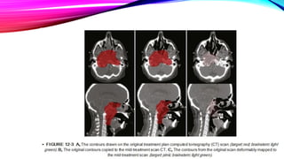 The document discusses image-guided adaptive radiotherapy (IGRT) and its evolution, emphasizing how adaptive radiotherapy (ART) allows for the modification of treatment plans based on anatomic changes during therapy. It outlines various types of adaptations, the importance of accurate imaging, and addresses applications and challenges in real-time tumor tracking and treatment response. The document highlights the significance of adapting radiotherapy to individual patient needs and ongoing technological advancements in imaging and treatment methods.