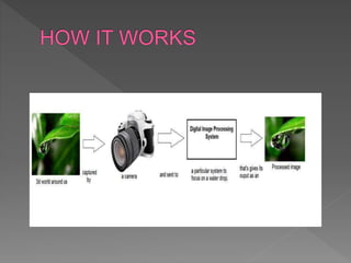 This document provides information about digital image processing. It defines digital image processing as manipulating digital images through a computer, which is a subfield of signals and systems that focuses on images. The document lists some basic knowledge required for digital image processing, including signals and systems, calculus, probability, and basic programming skills. It also outlines several applications of digital image processing such as medical imaging, remote sensing, and pattern recognition. Finally, it provides some examples of companies that employ digital image processing.
