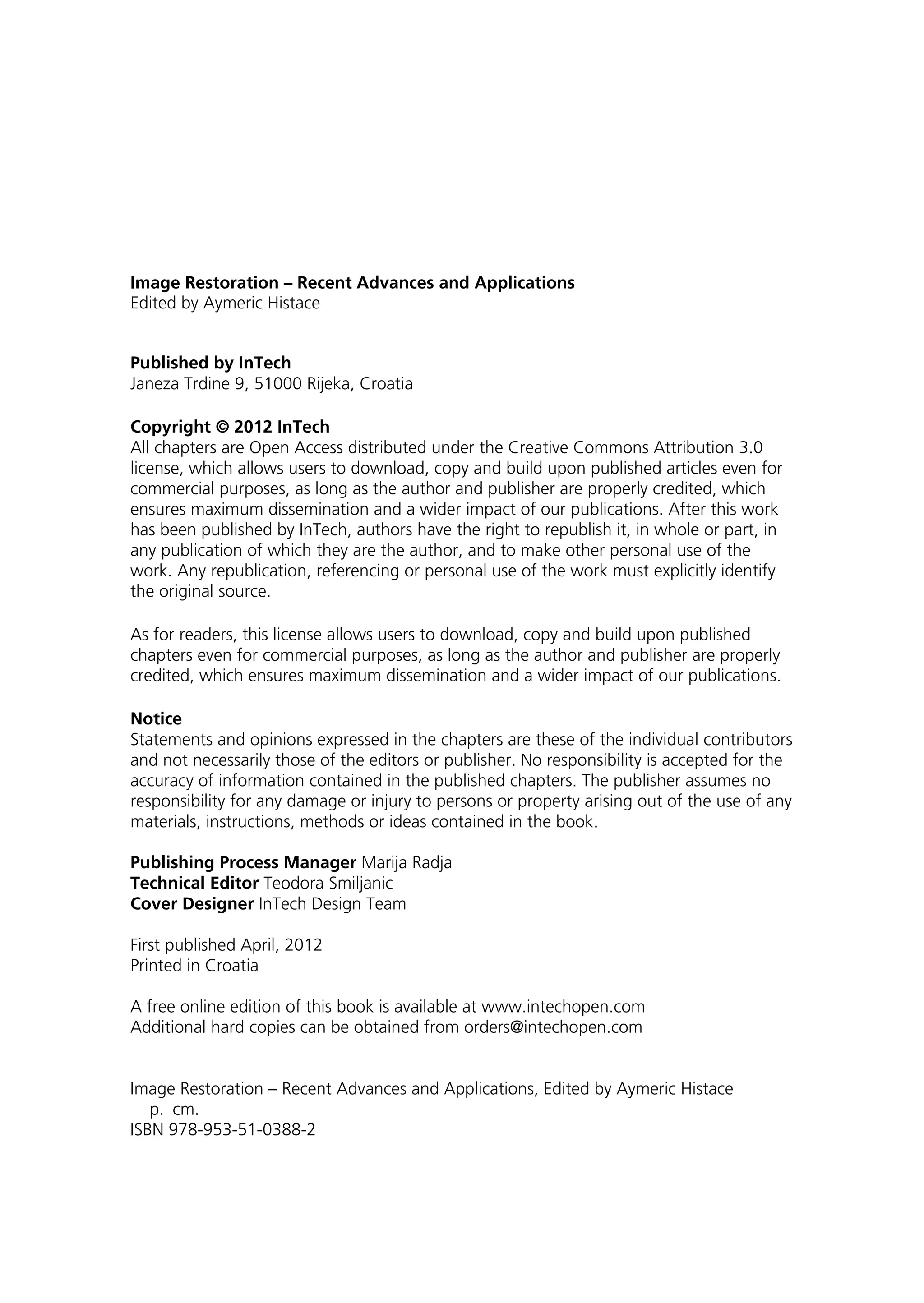 This document discusses image restoration techniques for images degraded by space-variant blurs. It describes running sinusoidal transforms as a method for space-variant image restoration. Running transforms involve applying a short-time orthogonal transform within a moving window, allowing approximately stationary processing. This addresses limitations of methods that assume space-invariance or require coordinate transformations. The chapter presents running discrete sinusoidal transforms as a way to perform the space-variant restoration by modifying orthogonal transform coefficients within the window to estimate pixel values.