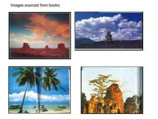 The document discusses different methods for sourcing and processing images. It outlines advantages and disadvantages of sourcing images from books, Google Images, stock image libraries, copyright free sites, and using one's own existing images. Regarding processing, it discusses cropping, scaling images to different sizes, using different image resolutions of 300 dpi for print and 72 dpi for web, and manipulating images through changing brightness and using levels tools. The key advantages and disadvantages are accessibility and quality of the images, as well as copyright issues and costs depending on the sourcing method.