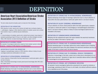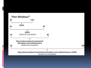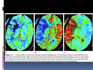 Imaging is crucial for diagnosing and guiding management of stroke. MRI is more sensitive than CT for detecting early changes, with expedited protocols using FLAIR, T2*, and DWI answering key questions acutely. Imaging can identify the type of stroke (ischemic vs. hemorrhagic), location, age of the lesion, and potential underlying causes. Understanding the imaging appearance of strokes across time points from hyperacute to chronic is important for accurate diagnosis and treatment.