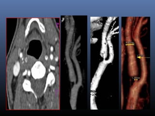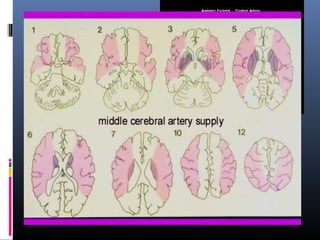 The document discusses the role of imaging in ischemic stroke, including definitions, pathophysiology, types of imaging techniques, and their clinical significance. It covers various imaging modalities such as non-contrast computed tomography (NCCT), magnetic resonance imaging (MRI), diffusion-weighted imaging (DWI), and others, highlighting their utility in identifying ischemic strokes and differentiating them from mimics like hemorrhage. Additionally, it addresses techniques for evaluating ischemic penumbra and the importance of timely imaging for effective treatment.