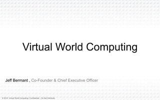 This document describes Virtual World Computing's new product called Imago, which is an image similarity search engine. It allows users to take a photo of an item and find it online to purchase. The document outlines Imago's advantages over other search engines in this capability. It also describes Virtual World Computing's existing safer cloud-based browser called Cocoon and how Imago could integrate within it. Finally, it provides details on the company's executive team, financial projections, and market opportunity for this new image search product.