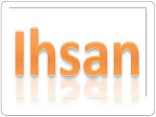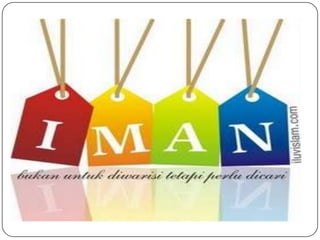 Dokumen tersebut membahas tentang pengertian iman, hakikat iman, rukun iman, pengertian ihsan, dan cara hidup Islam yang menekankan hubungan dengan Allah SWT, sesama manusia, dan alam sekitar. Iman dijelaskan sebagai kepercayaan yang mendalam pada Allah SWT dan ajaran-Nya, bukan sekadar pengakuan lisan. Ihsan merupakan tingkat iman tertinggi yang meliputi ketaatan dan ikhlas meskipun tidak