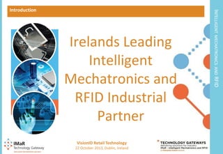 The document outlines the role of Dr. Pat Doody in the RFID and Internet of Things sectors, detailing his expertise and the activities of the IMAR technology gateway in Ireland. It discusses the applications and evolution of RFID technology across various industries and its promotion through initiatives like RFID in Europe. Additionally, it includes information on collaborative funding and contact details for key personnel involved in RFID research and development.