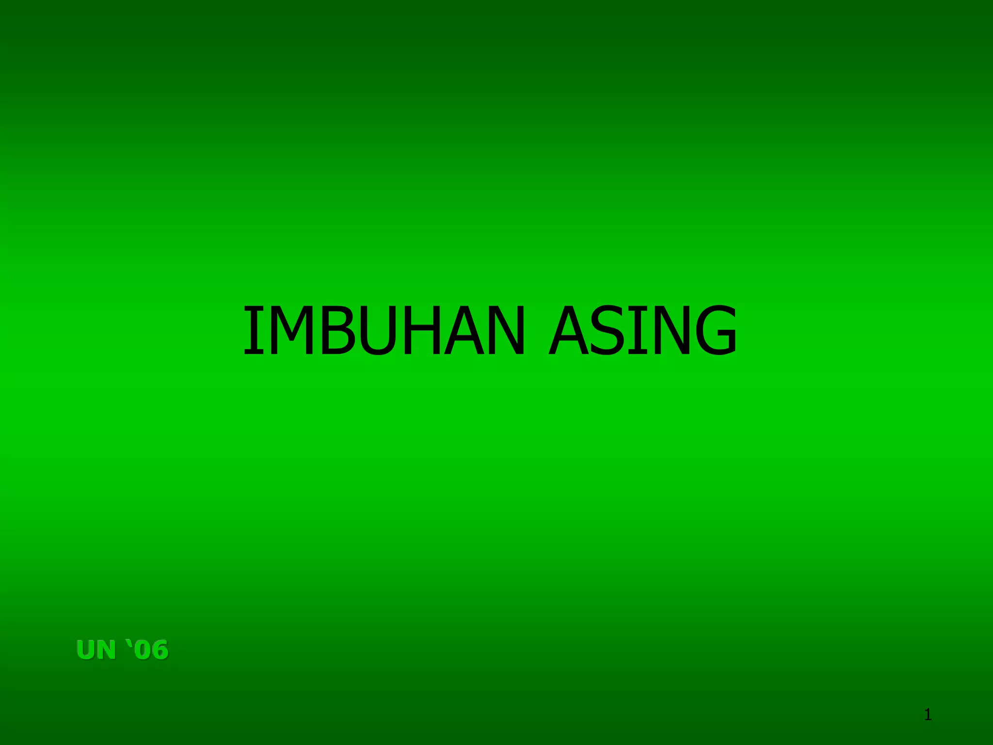 Dokumen tersebut membahas tentang imbuhan asing dalam bahasa Indonesia, terutama dalam pertumbuhan bahasa. Imbuhan-imbuhan tersebut berasal dari bahasa daerah maupun asing seperti Sanskerta, Arab, dan Barat. Dibahas pula macam-macam imbuhan tersebut beserta contoh dan maknanya.