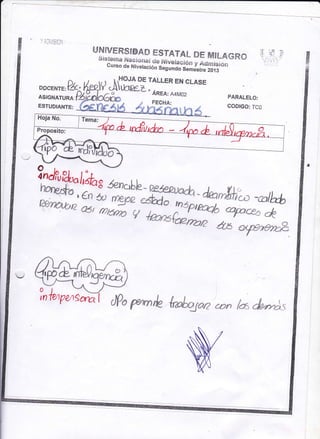 is-*err¡a *{aec * i de-fUsyele _ O Aeirn is¡ Curco de Isivetacio. S.gr"li-s;rnestre 20rg o na DocENrE: ?k, ITHOJA í+ i-a_ .,, ;:i et,e DE TALI_ER EN CLA.SE cl.IUCEL,Áo=^:44*02 ASIGNATURA: PARALELO: ESTUDIANTE: GODiGO: TCO ErJídüb HpL^trá,rb_ ;'&;*W'dm"#** rrynann'!n O5t o*t qW o¡ ntupu -@tb mt*m Jry_oftercx/a @pq* & m,*rfi ? Jry^o-'--'YtK-1C/a @p% ük lmraboaa ffi.o 'ww