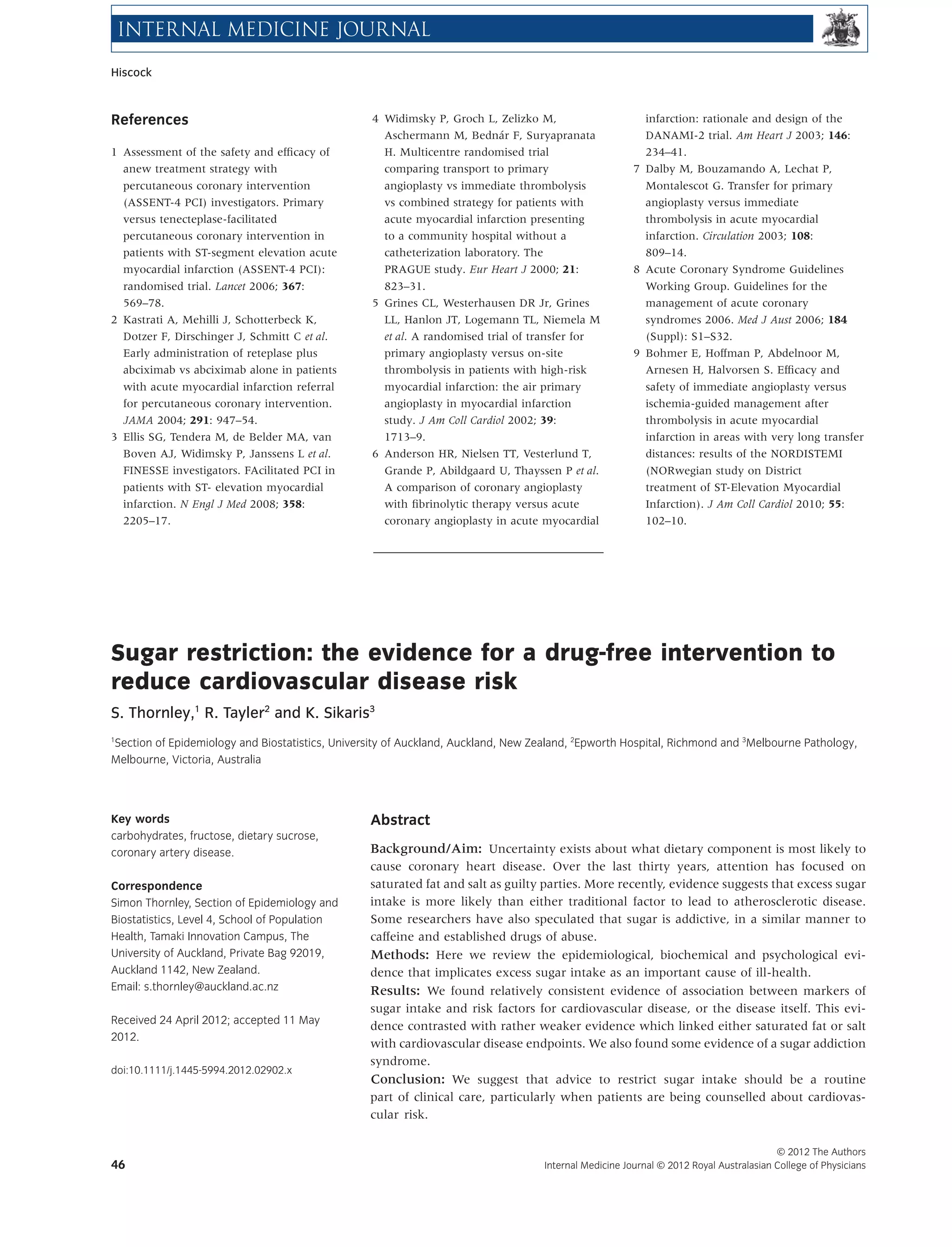 This document summarizes the evidence linking sugar intake to cardiovascular disease risk. It finds relatively consistent evidence that markers of sugar intake are associated with risk factors for cardiovascular disease and the disease itself. In contrast, the evidence linking saturated fat and salt to cardiovascular outcomes is weaker. The document also reviews the history of dietary guidelines focusing on fat and sugar, and how views have changed over time regarding sugar's role in disease risk.