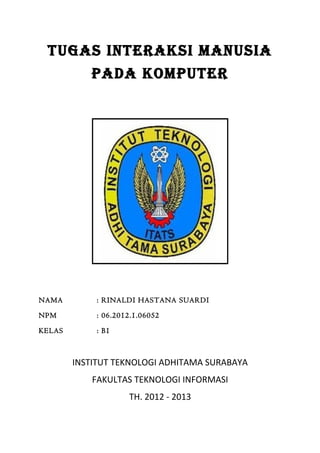 Dokumen ini membahas interaksi manusia dan komputer, termasuk aspek teknis dan manusia dalam sistem komputer serta bagaimana mereka saling berkomunikasi. Ditekankan pentingnya pemahaman akan peran indra manusia dan faktor-faktor psikologis dalam mendesain antarmuka interaktif yang efektif. Akhirnya, diperlukan perhatian pada kesehatan saat menggunakan perangkat komputer agar tidak merugikan kesejahteraan pengguna.